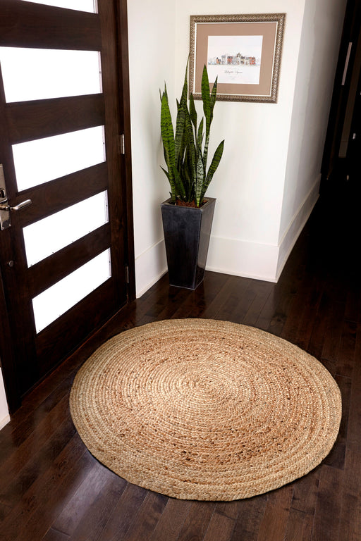 Swirly, space-dyed pattern using all-natural jute. A great solution for underneath your dining table or as an inviting option for your entry way a...