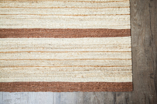All-natural jute in a striped pattern of earth tones is accented with fine polyester over-threading for a perfectly balanced and delightful aesthet...