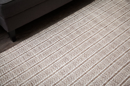 This wool-blend area rug features natural brown hues and a minimalist design that’s easy to pair with your existing decor. A tiled pattern adds dep...