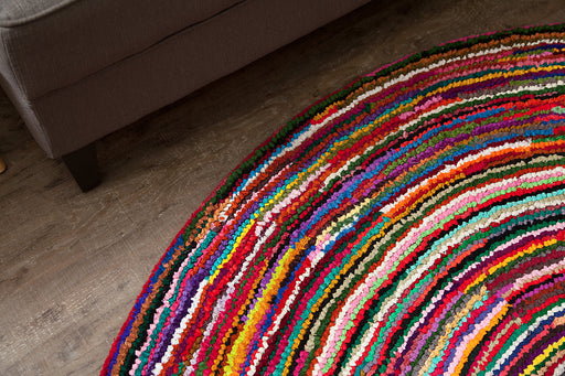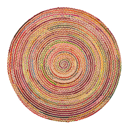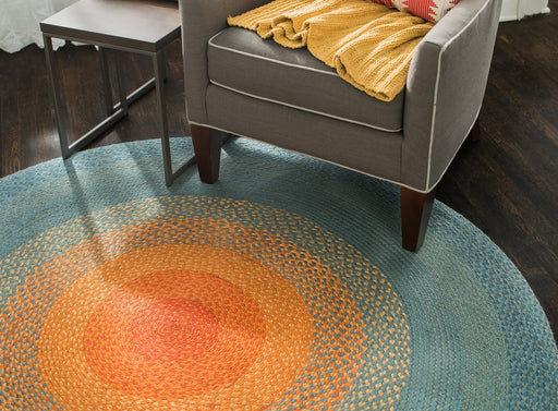 Rise and shine with this vibrant, round braided area rug, made from 100% natural fiber. Bring brilliant color and comfort into your bedroom or kitc...