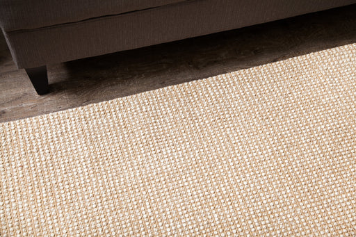 Perfectly relaxed, casual and ready for anything--this rug will make itself at home in any setting. Golden jute and silken, ivory PET yarn are han...