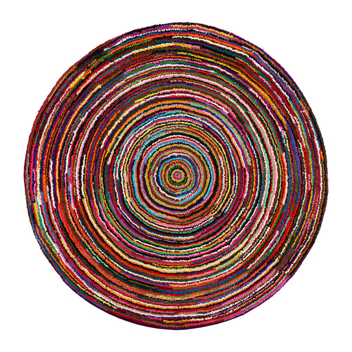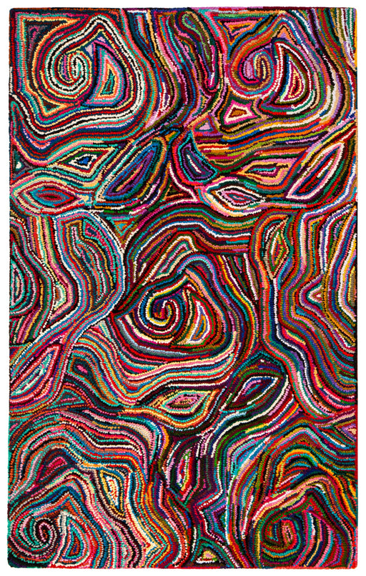 Dazzling, day-glow colors and kaleidoscopic patterns are the hallmark our Atlas collection. The ultra-plush pile is hand tufted using recycled cott...