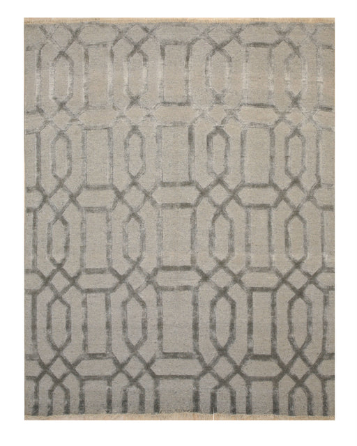 Hand-knotted quality, flat soumac-weave wool background with raised viscose pattern Wool & viscose Modern transitional style Geometric pattern ...
